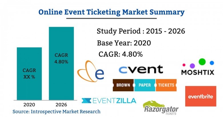 News Global Online EventTicketing Market Trends by 2027 krushnachepurwar 1,574 views The global online event ticketing market wasvalued at USD 49.53 billion in 2019 and is expected to reach USD 68.55 billionby the year 2026, at a CAGR of 4.80%. « Previous Online EventTicketing Market Online EventTicketing Market size Online EventTicketing Market share Online EventTicketing Market research