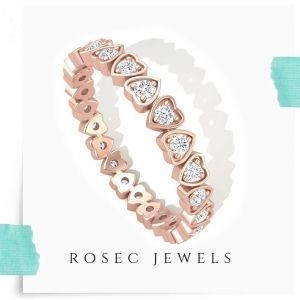 An elegant and classic design that makes the extraordinary Diamond Wedding Band. Round Cut Diamond with IJ-SI Color Clarity is set in the Heart-Shaped case in the Prong Setting. We craft this beautiful Heart Full Eternity Ring in 14kt Yellow Gold.