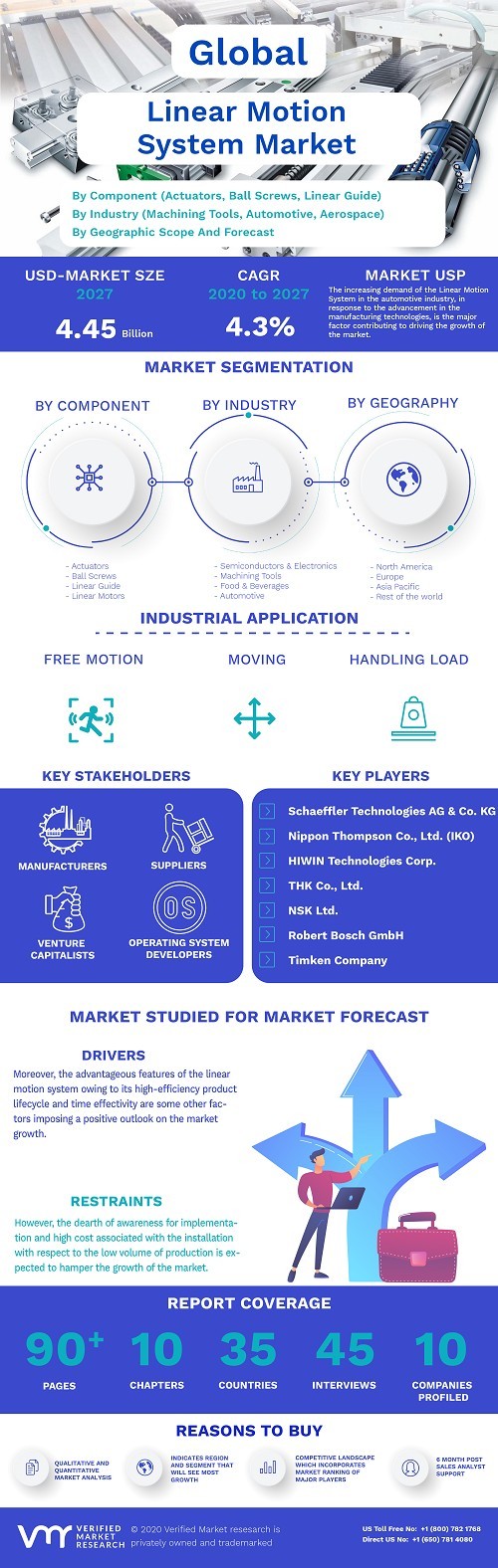 News Linear Motion System Market Size By Component, By Industry, By Geographic Scope And Forecast smithjenny22119 1,049 views Linear Motion System Market was valued at USD 3.16 Billion in 2019 and is projected to reach USD 4.45 Billion by 2027, growing at a CAGR of 4.3% from 2020 to 2027. « Previous Linear Motion System Market