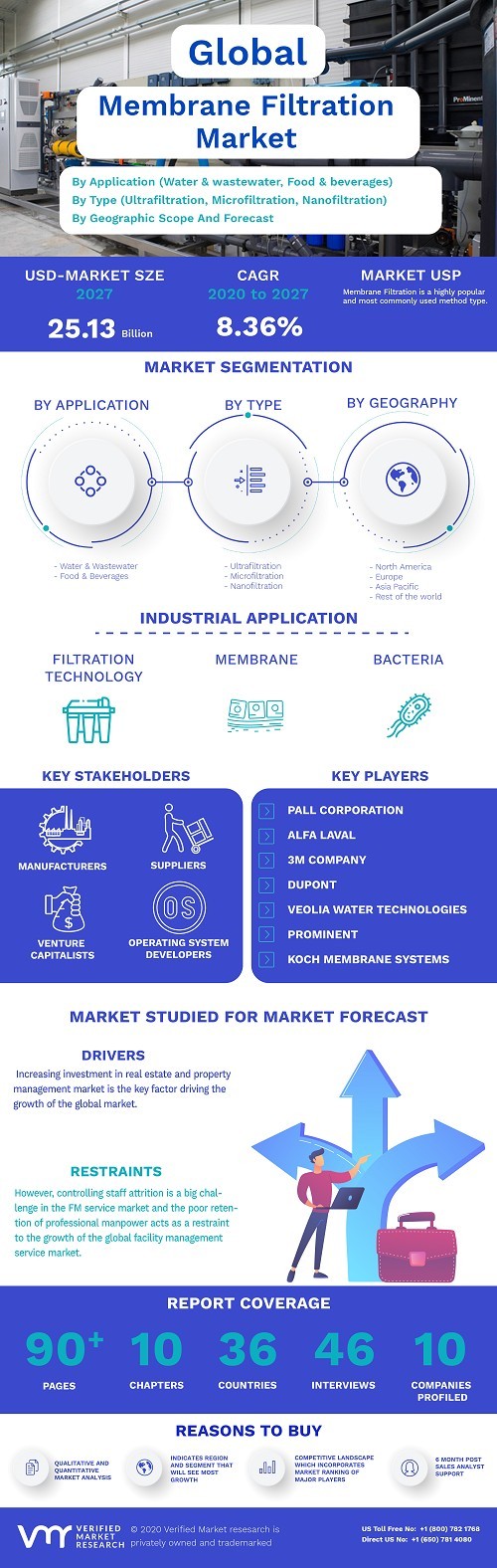 Membrane Filtration Market was valued at USD 13.42 Billion in 2019 and is projected to reach USD 25.13 Billion by 2027, growing at a CAGR of 8.36% from 2020 to 2027.