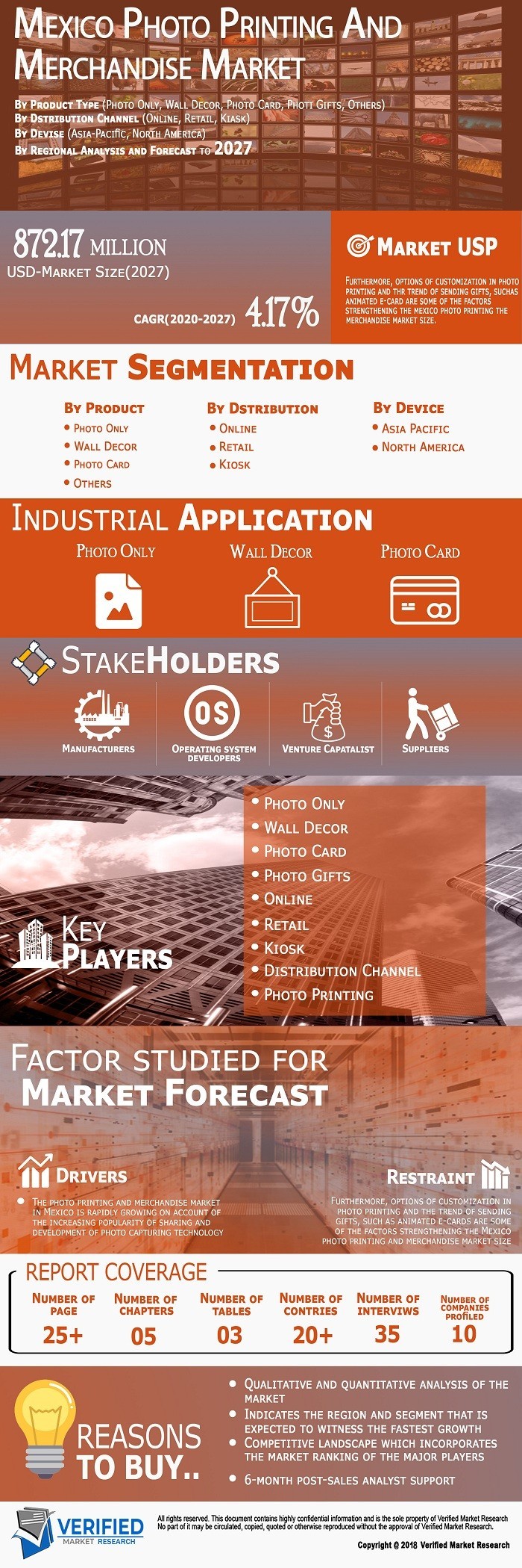 Mexico Photo Printing and Merchandise Market was valued at USD 646.02 Million in 2019 and is projected to reach USD 872.17 Million by 2027, growing at a CAGR of 4.17% from 2020 to 2027.