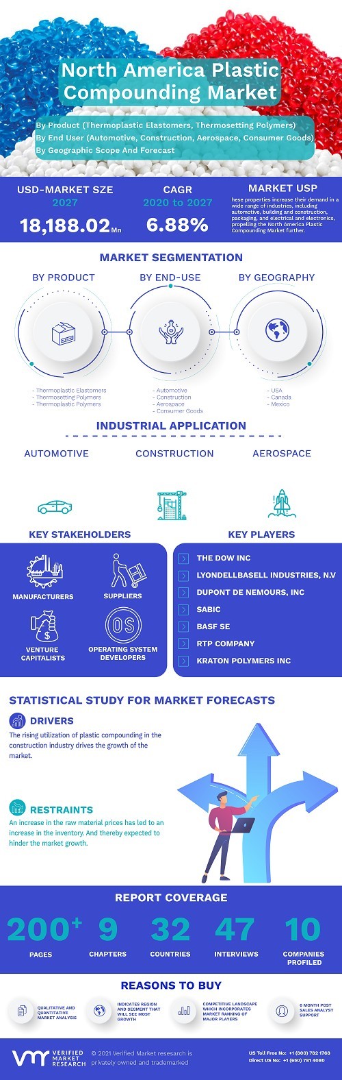 News North America Plastic Compounding Market Size By Product (Thermoplastic Elastomers, Thermosetting Polymers, and Thermoplastic Polymers) smithjenny22119 1,041 views North America Plastic Compounding Market was valued at USD 10,767.85 Million in 2019 and is projected to reach USD 18,188.02 Million by 2027. « Previous North America Plastic Compounding Market