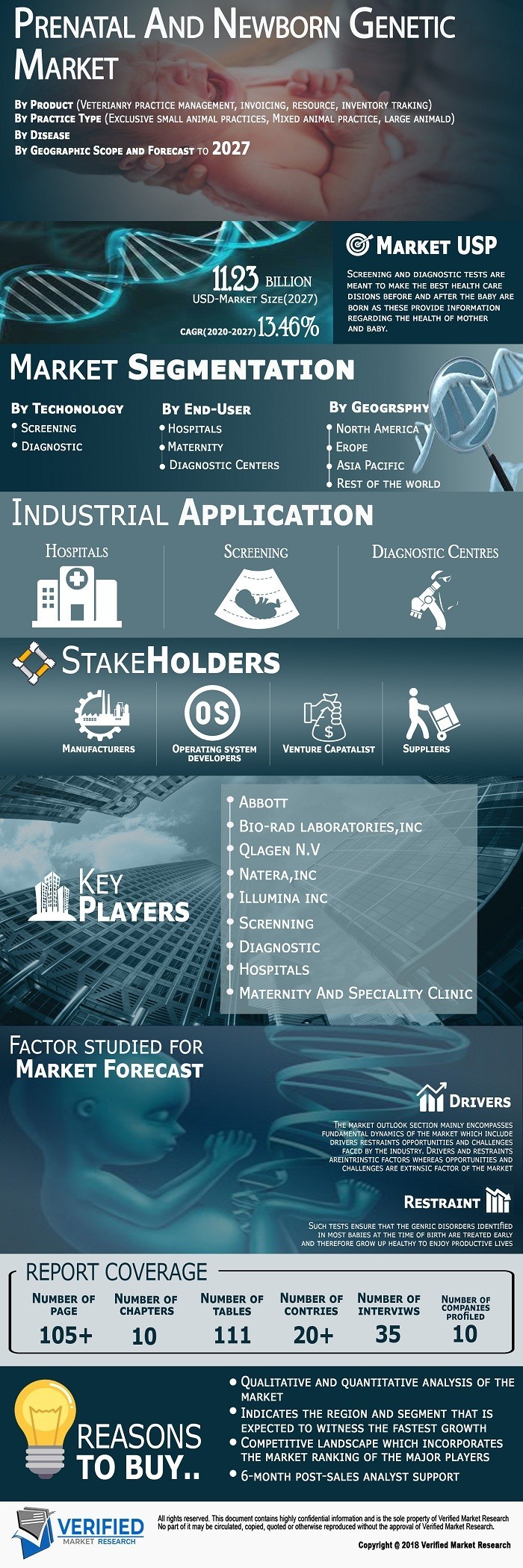 The Global Prenatal and Newborn Genetic Testing Market was valued at USD 4.17 Billion in 2019 and is projected to reach USD 11.23 Billion by 2027, growing at a CAGR of 13.46% from 2020 to 2027.