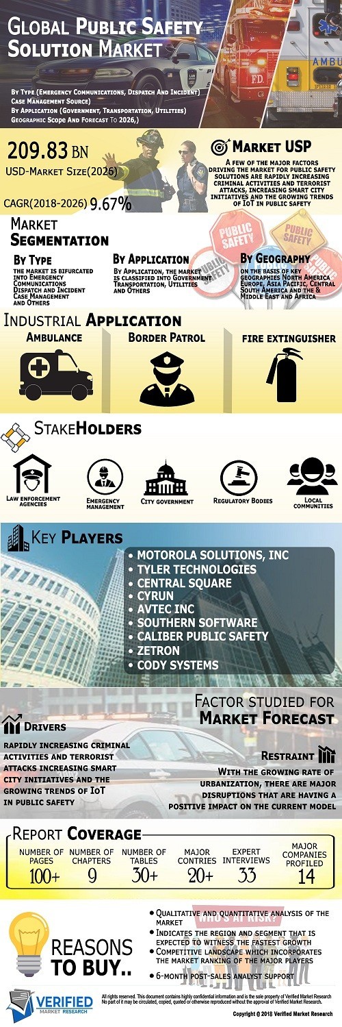 Public Safety Solution Market was valued at USD 8.20 Billion in 2018 and is projected to reach USD 40.81 Billion by 2026, growing at a CAGR of 22.61% from 2019 to 2026.