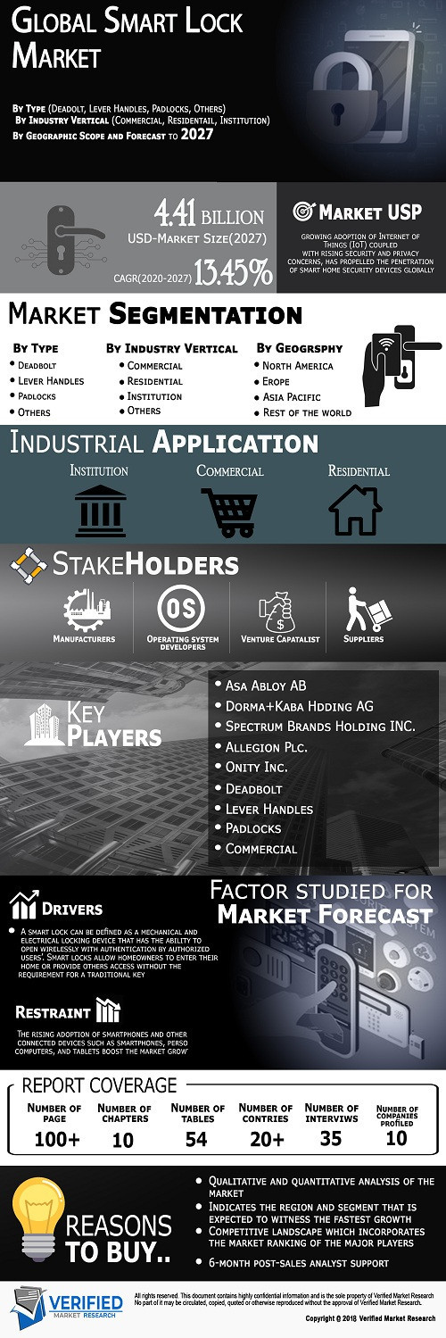 Smart Lock Market By Type (Deadbolt, Lever Handles, Padlocks, Others), By Industry Vertical (Commercial, Residential, Institution & Government, Industrial and Others)