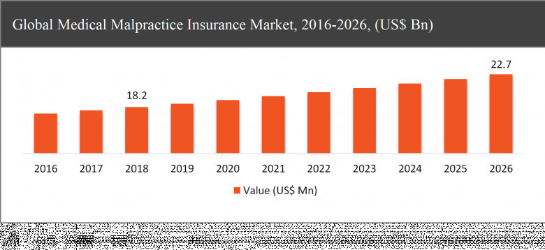 “The Medical Malpractice Insurance Market size was valued at US$ 18.2 Bn in 2018 and is expected to grow at a compound annual growth rate (CAGR) of 3.2% for the forecast period ending 2026 reaching a Market value of US$ 22.7 Bn.”
