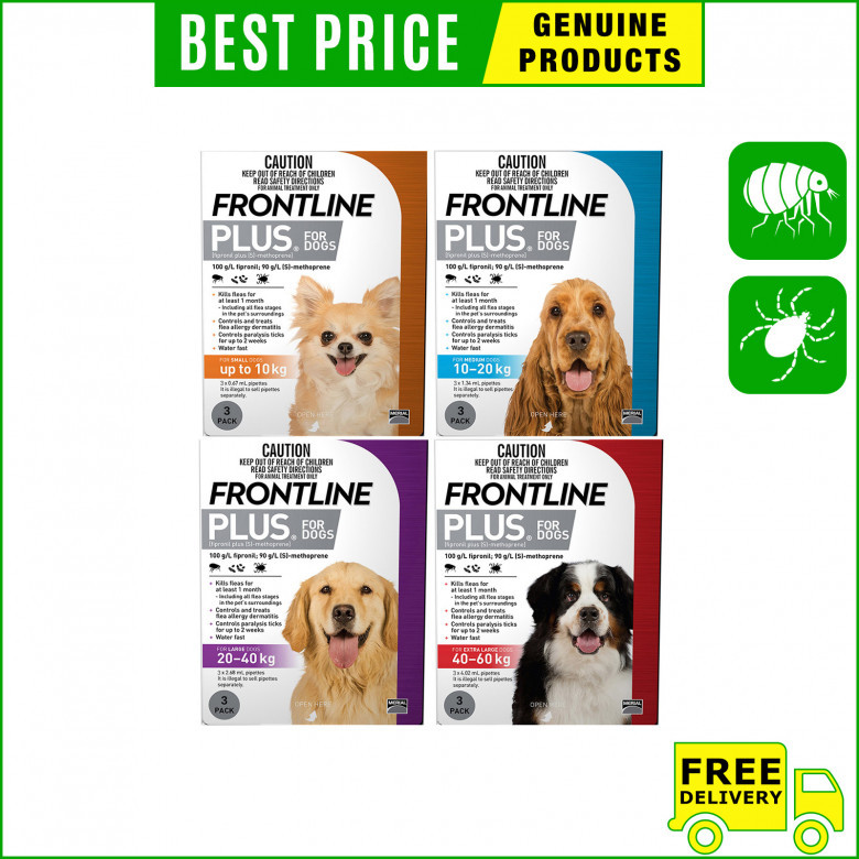 Use Frontline Plus for dogs is the best way to keep your dog safe from the harmful effects of flea and tick infestation. Adult fleas are killed in 12 hours and ticks are killed in 48 hours with this fast-acting topical treatment. We offer free shipping across Australia as well as low prices.