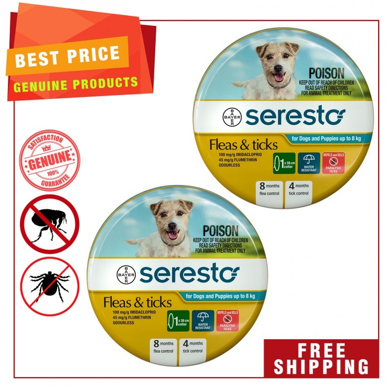 SERESTO- Collar 2 pieces for Flea and Tick Control on Dogs under 8 Kg